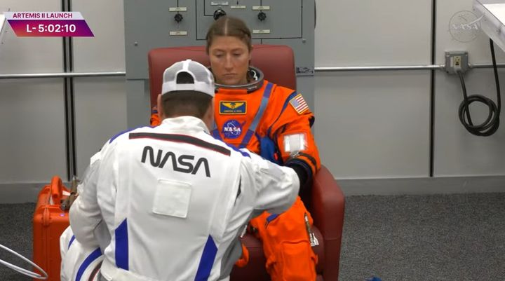 L'astronaute américaine Christina Koch avant le décollage de la mission Artemis II,le 1er avril 2026. (NASA / YOUTUBE)
